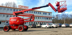 Коленчатые подъемники широко используют для высотных работ в труднодоступных местах. Технику можно применять для строительных, покрасочных, монтажных работ, обслуживания фасадов зданий и даже самолетов. Конструктивно это самоходная машина с выдвижной стрелой, на которой в нескольких местах предусмотрены изгибы. На конце стрелы расположена огороженная платформа для размещения на ней рабочих и грузов. В прокатном парке компании FORTRENT представлен большой выбор моделей коленчатых подъемников, доступных в аренду на выгодных условиях. Также заказчикам доступны ножничные подъёмники.